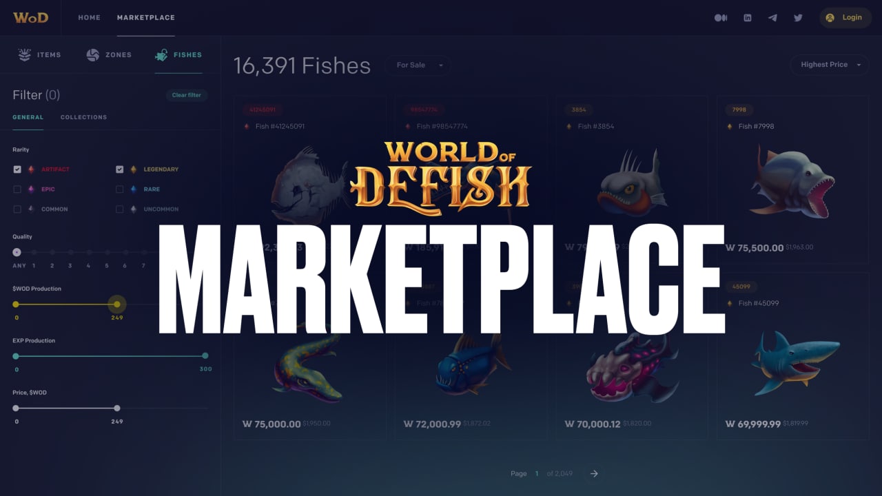 Feel a real Storm of the Seven Seas, hunting for mystical NFT Fish, crafting, competing and filling your pocket with $WOD doubloons. Welcome to World of Defish, play-to earn gaming universe running on BSC.